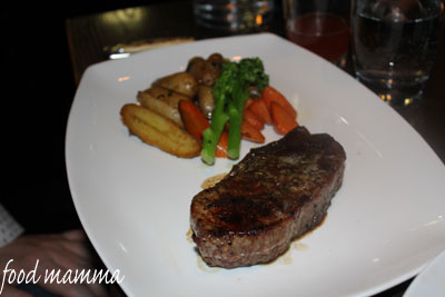 There weren’t a lot of vegetarian options for M but the kitchen was kind enough to make her gnocci with assorted veggies which she seemed to enjoy. B ordered the New York steak which looked juicy and tender.